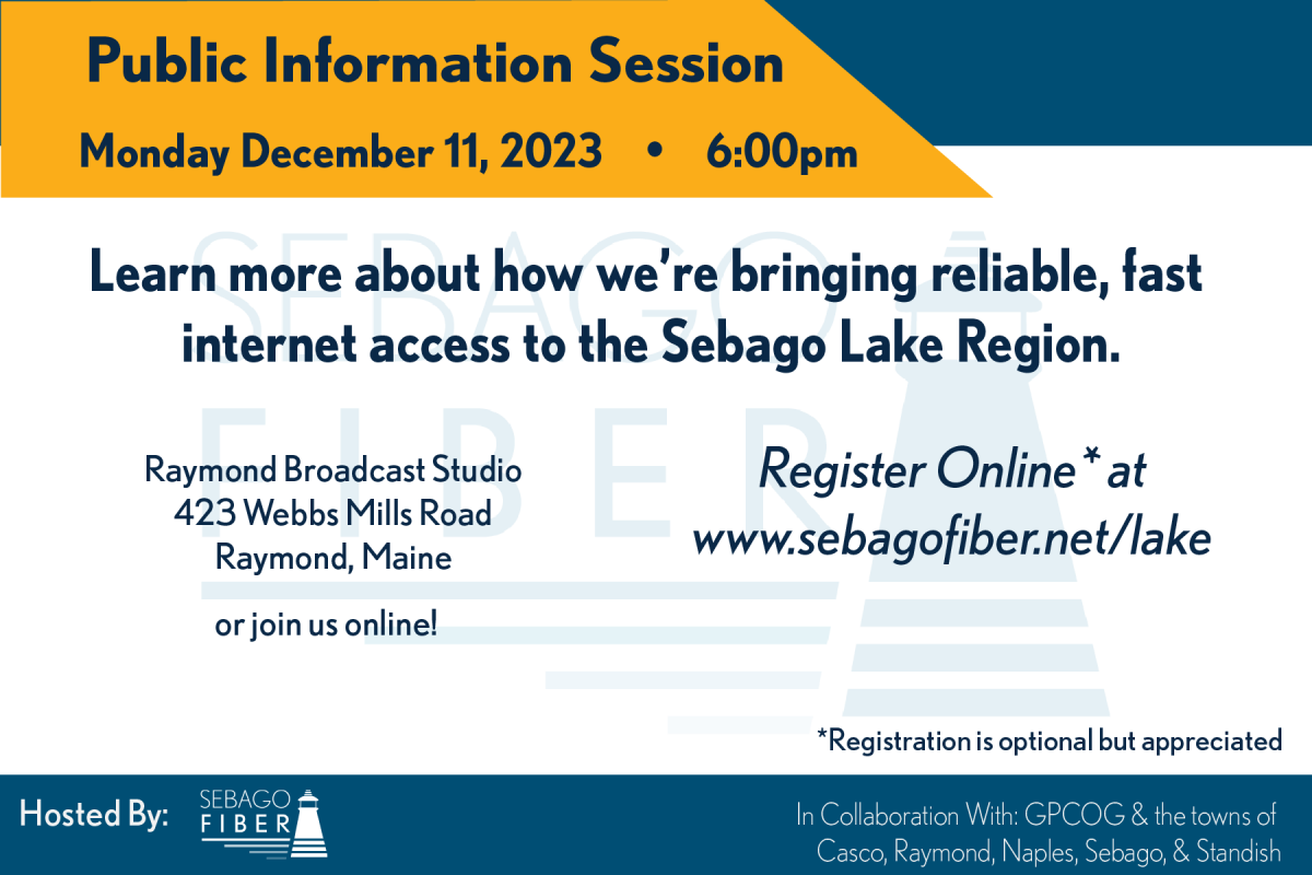 The Select Board will be hosting an informational meeting with Sebago Fiber regarding the creation of a dark fiber ring in Raymond.